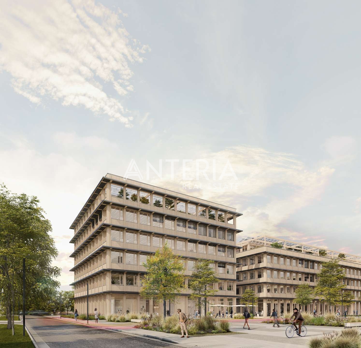 Geplant ist die Errichtung eines Gebäude-Ensembles (Gebäude A-D) in Holzbauweise (soweit zulässig vollständig, kein Holzhybrid). Ankermieter wird das Unternehmen HITACHI, welches auf ca. 10.000 m² seine Deutschlandzentrale in Gebäude A beziehen wird.
