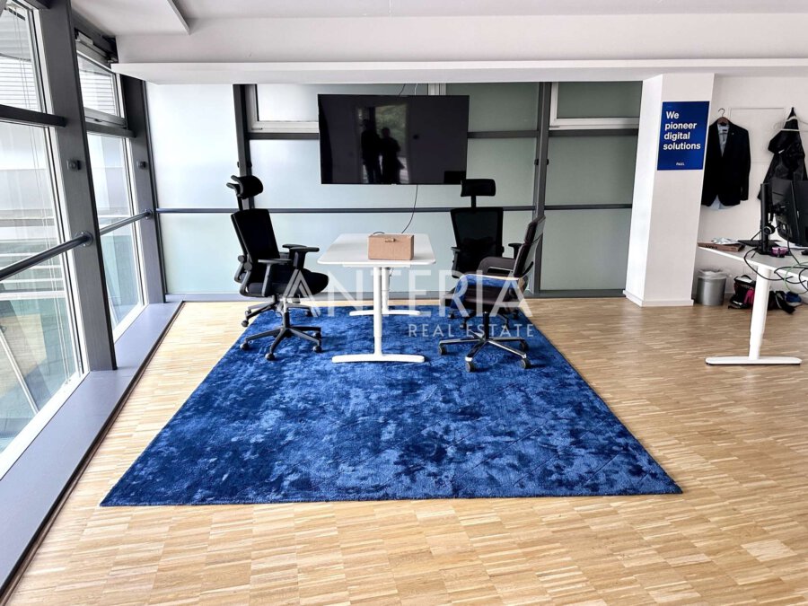 Weiterhin steht im 1.OG eine ca. 935 m² große Bürofläche zur Anmietung zur Verfügung. Die Fläche bietet neben kleineren Büroräumen für 2-4 Arbeitsplätze zwei große, lichtdurchflutete Open-Space-Bereiche. Die Einheit wurde kürzlich renoviert und in diesem Zuge mit einem neuen Boden sowie Kühlgeräten ausgestattet.