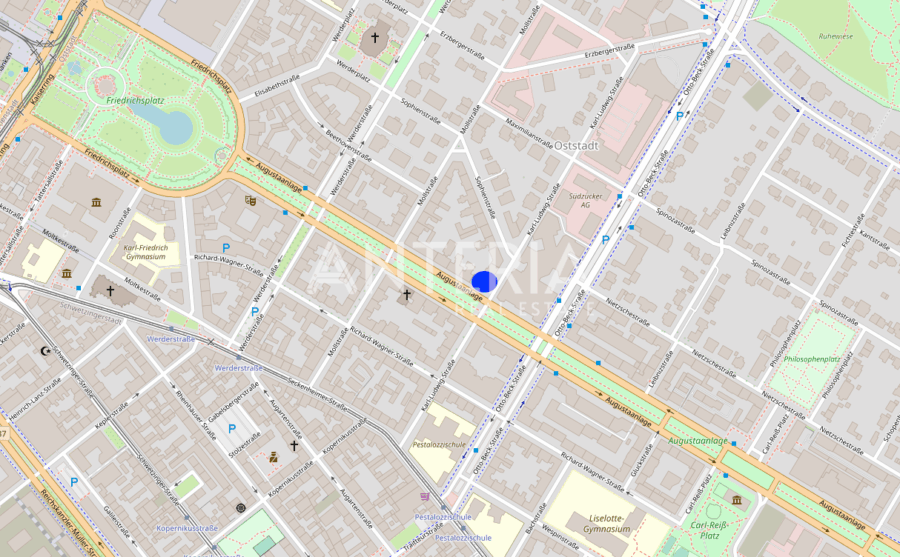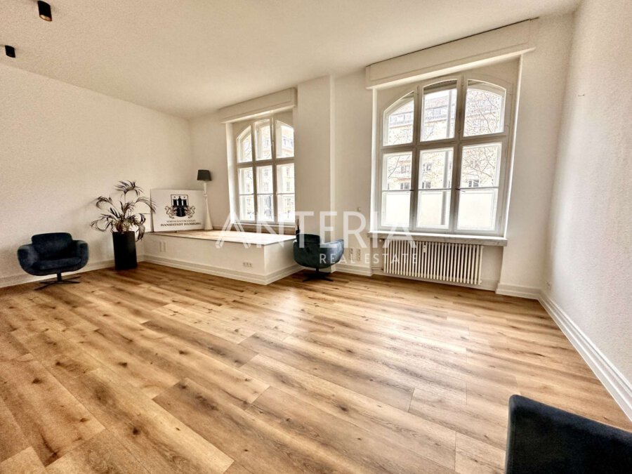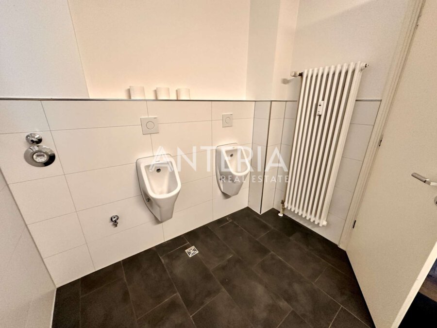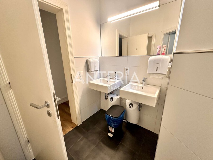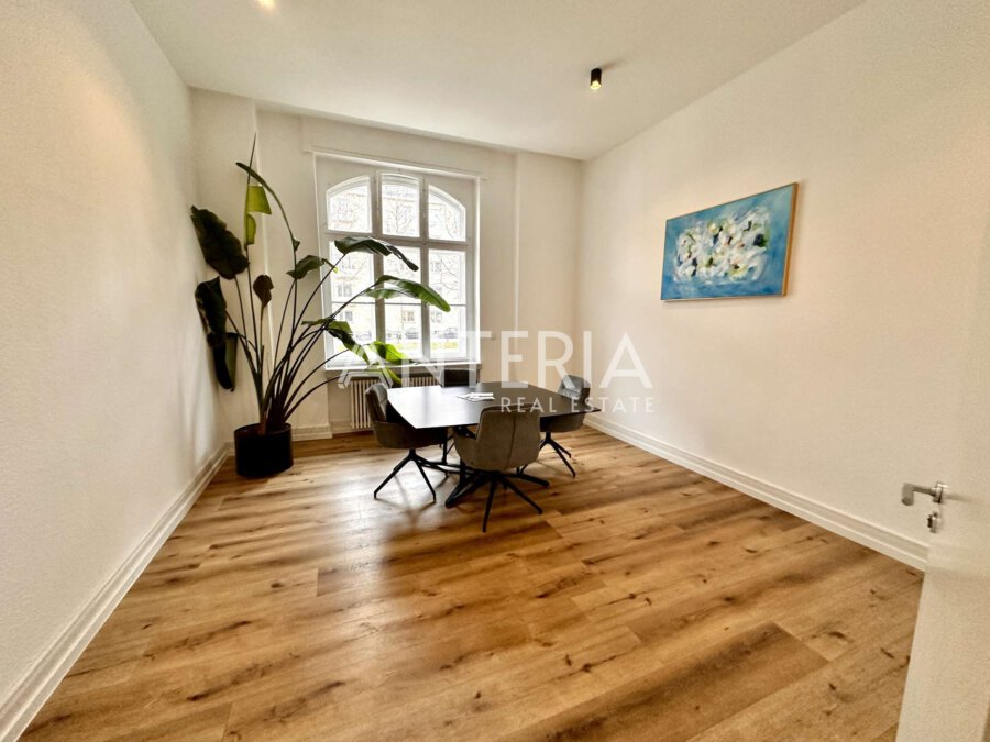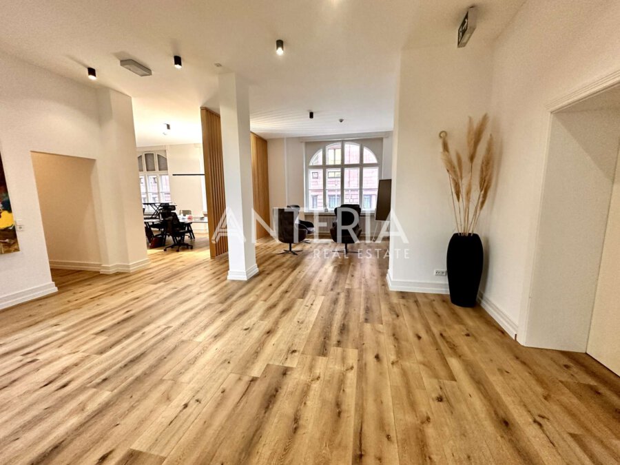 Das historische Bürogebäude befindet sich in exponierter, werbewirksamer Lage an der Augustaanlage. Für die Büroetage im Erdgeschoss (Hochparterre) wird ein Nachmieter gesucht. Die Fläche bietet insgesamt ca. 276,39 m² und verteilt sich auf zwei Einheiten. Die Räumlichkeiten wurden renoviert und bieten einen Vinylboden in Holzoptik, Cat 7 Verkabelung, sowie modernisierte WC-Bereiche, eine Teeküche und eine Terrasse zum Innenhof. In der benachbarten Tiefgarage steht ein Stellplatz zur Verfügung.